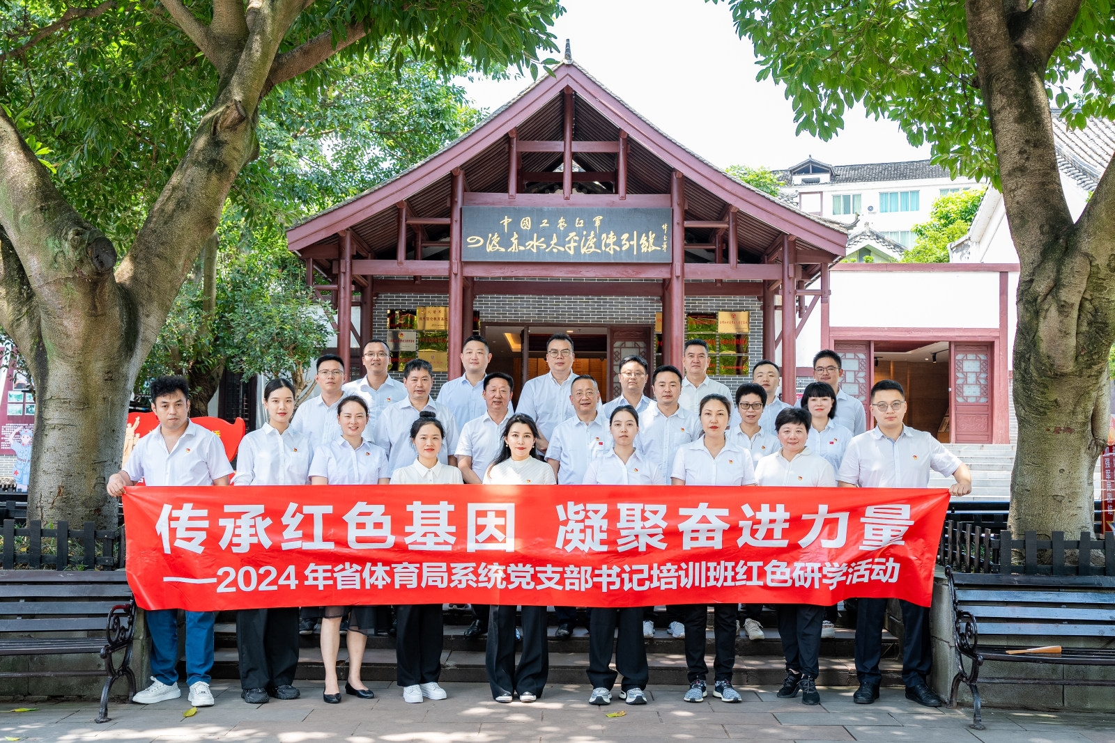 為弘揚(yáng)黨的優(yōu)良傳統(tǒng),重溫黨的光輝歷史,將紅色基因融入黨紀(jì)學(xué)習(xí)教育,提升黨支部書記的政治素養(yǎng)、履職能力和業(yè)務(wù)水平,近日,省體育局系統(tǒng)黨支部書記培訓(xùn)班赴瀘州市黨性教育基地開(kāi)展紅色研學(xué)活動(dòng),并與瀘州老窖集團(tuán)開(kāi)展黨建共建活動(dòng)和座談交流。20名直屬單位黨支部書記參加活動(dòng)。