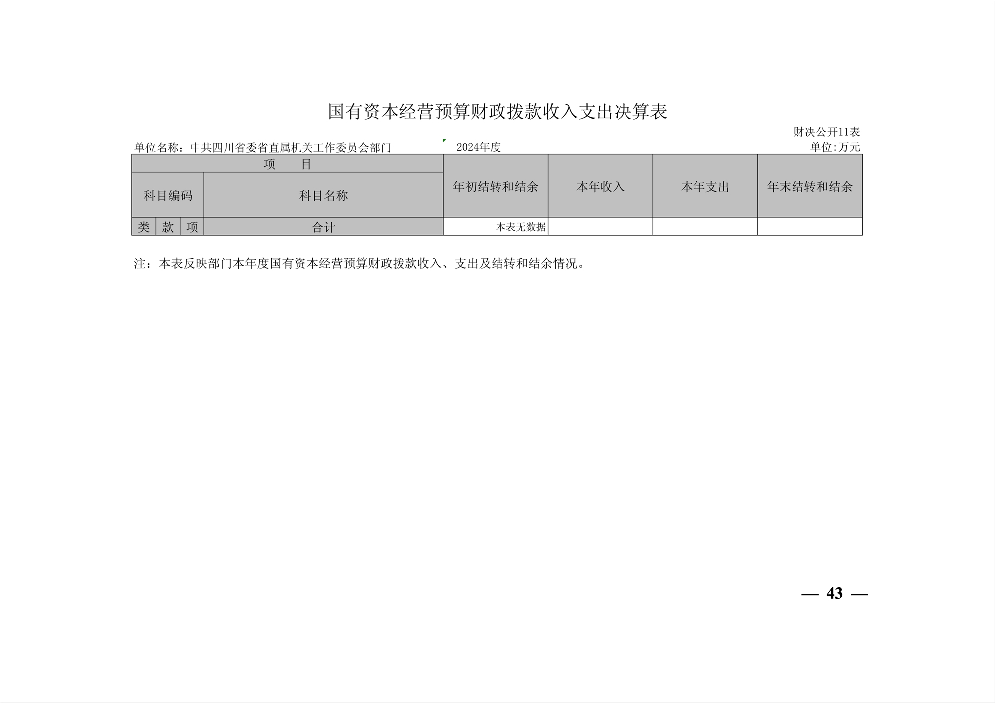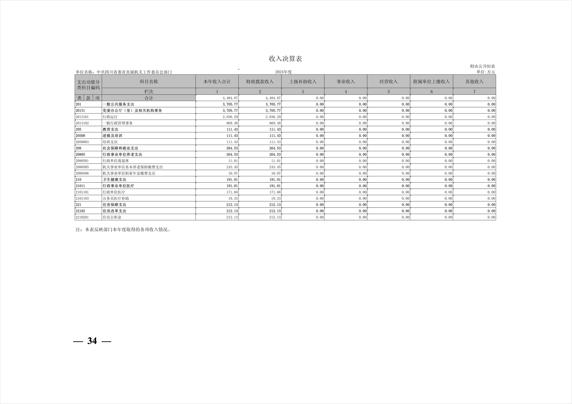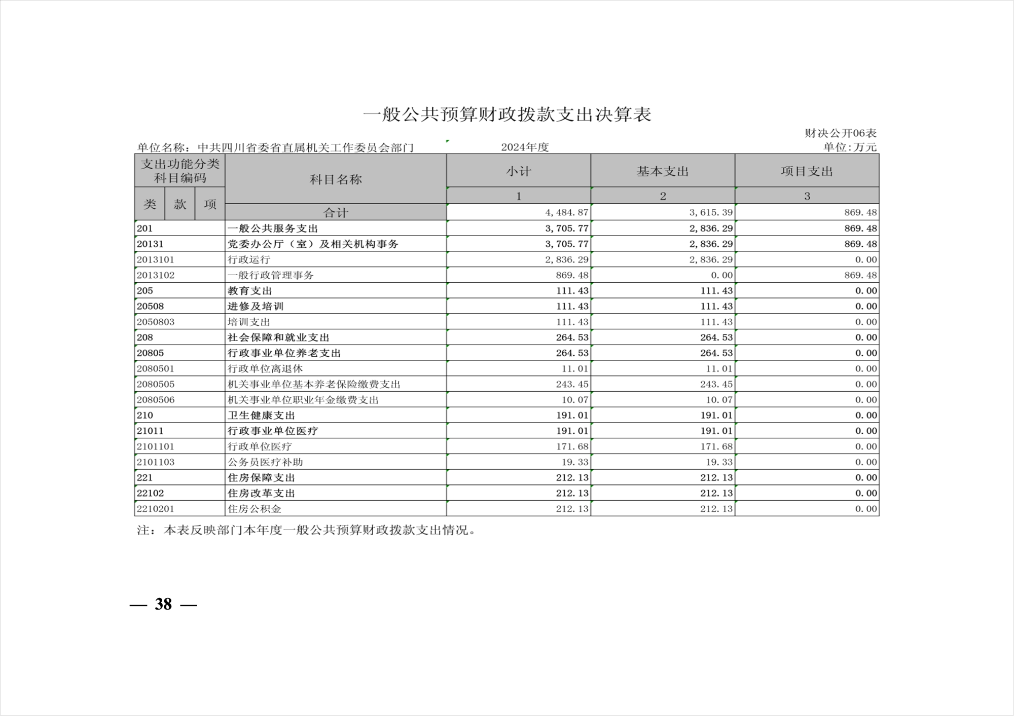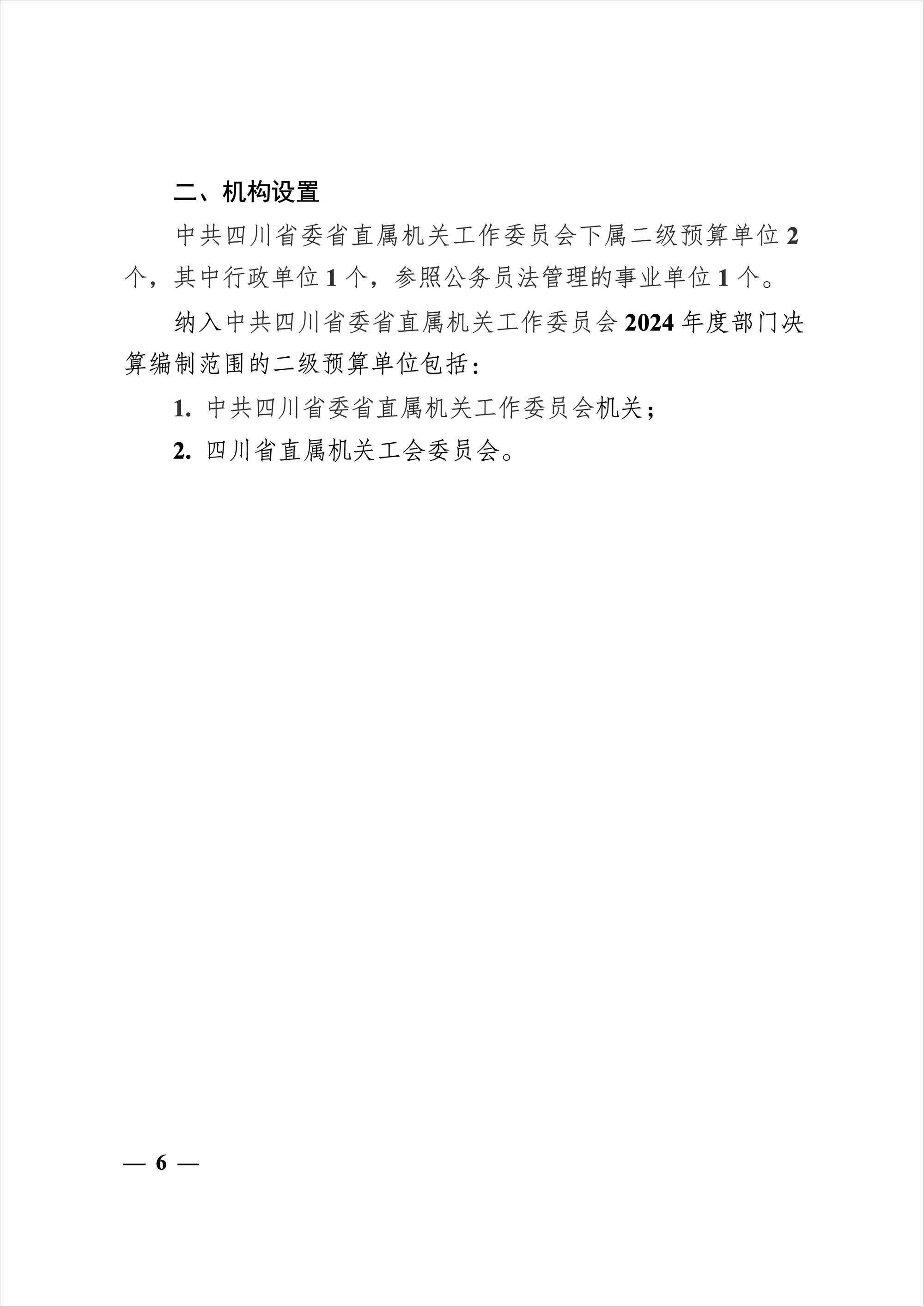 2024年度中共四川省委省直屬機(jī)關(guān)工作委員會(huì)部門決算