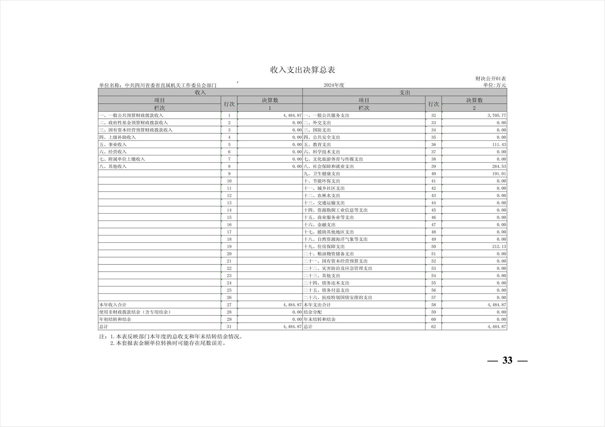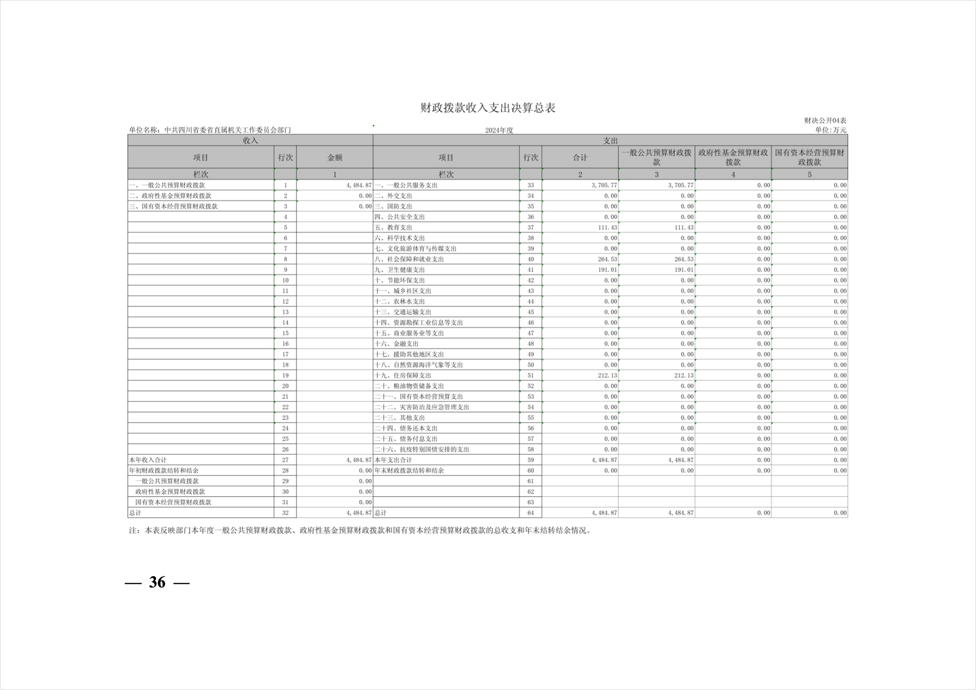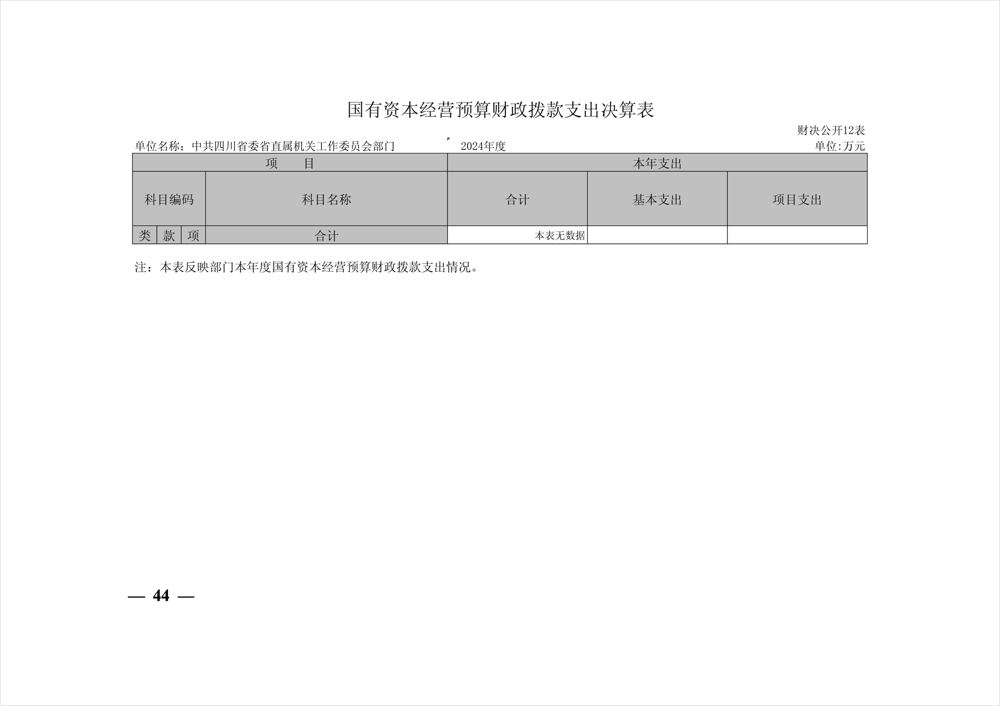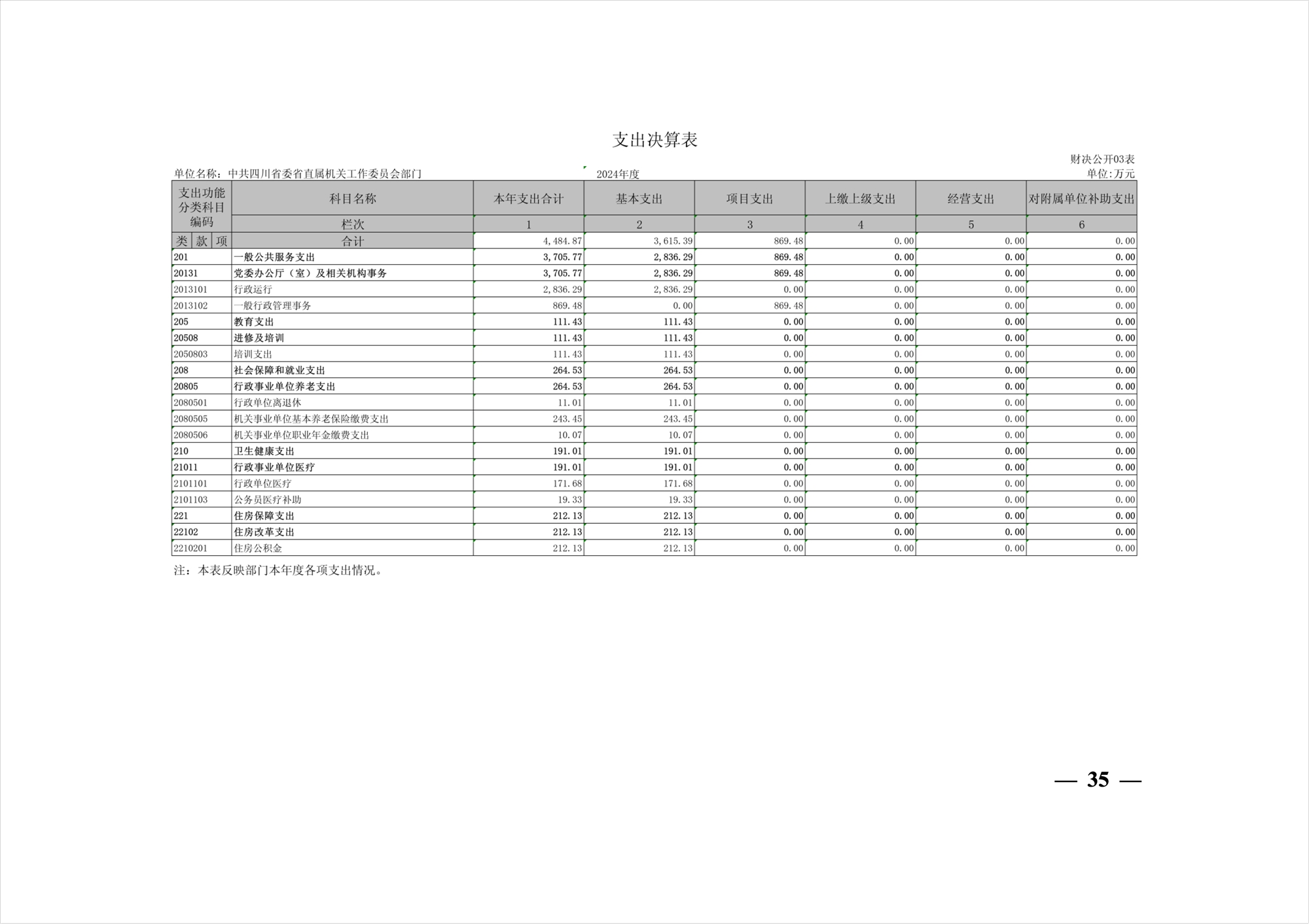 2024年度中共四川省委省直屬機(jī)關(guān)工作委員會(huì)部門決算