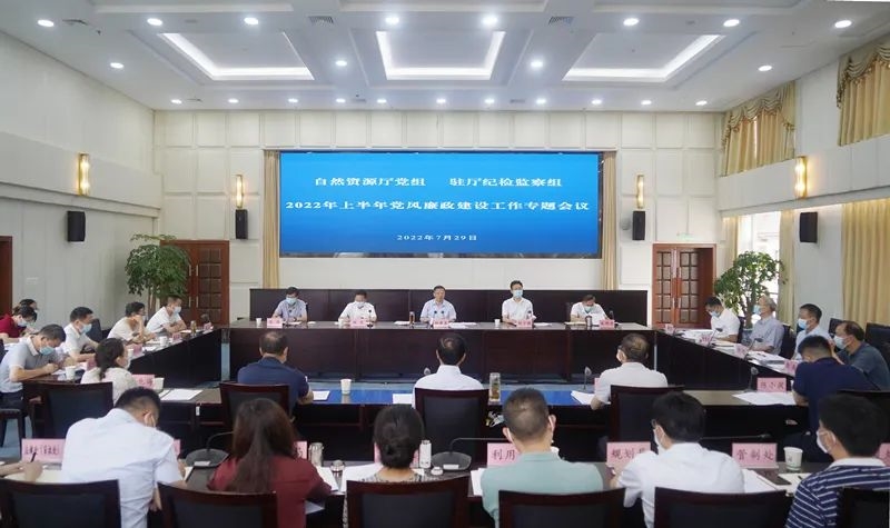 7月29日,自然資源廳黨組與駐廳紀檢監(jiān)察組聯(lián)合召開2022年上半年黨風廉政建設專題會,廳黨組書記、廳長,省自然資源總督察孫建軍主持會議并講話,駐廳紀檢監(jiān)察組組長、廳黨組成員蒲從雙通報監(jiān)督執(zhí)紀工作中發(fā)現(xiàn)的主要問題并提出具體工作要求,廳黨組成員、機關黨委書記謝安軍匯報上半年黨風廉政建設重點工作完成情況、存在的問題和下一步打算。廳黨組副書記、一級巡視員劉少敏匯報履行“一崗雙責”情況,總工程師羅旭剛書面匯報履行“一崗雙責”情況。