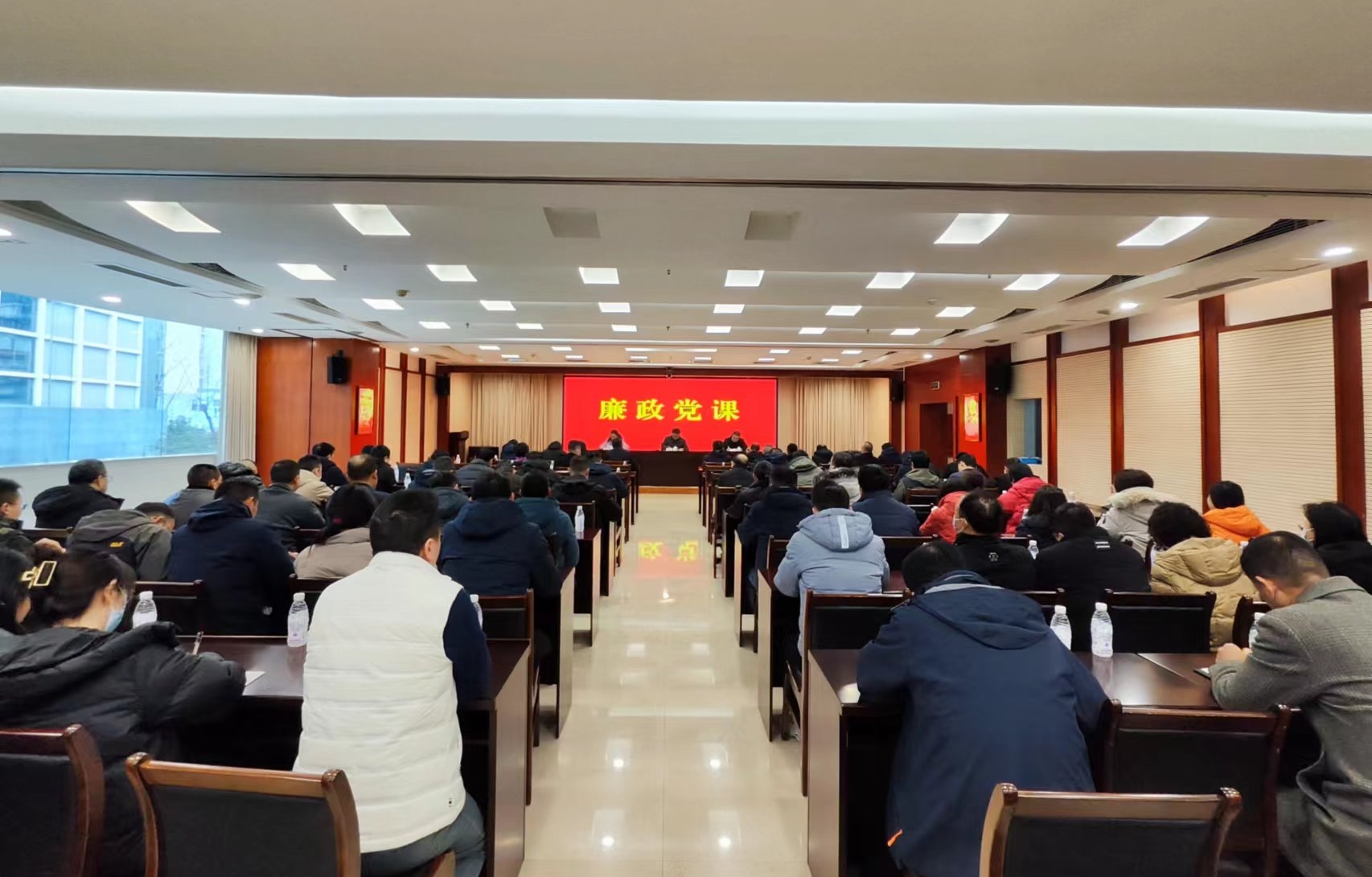 為筑牢廉潔堤壩打造清廉機關,1月22日,駐省委軍民融合辦紀檢監察組組長陳征同志以“持續發力 縱深推進 將黨的自我革命進行到底”為題,為省委軍民融合辦黨員干部上了一堂集體廉政黨課。辦機關、國防工會、直屬單位共70余人聆聽黨課。