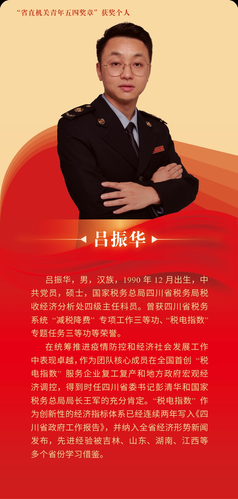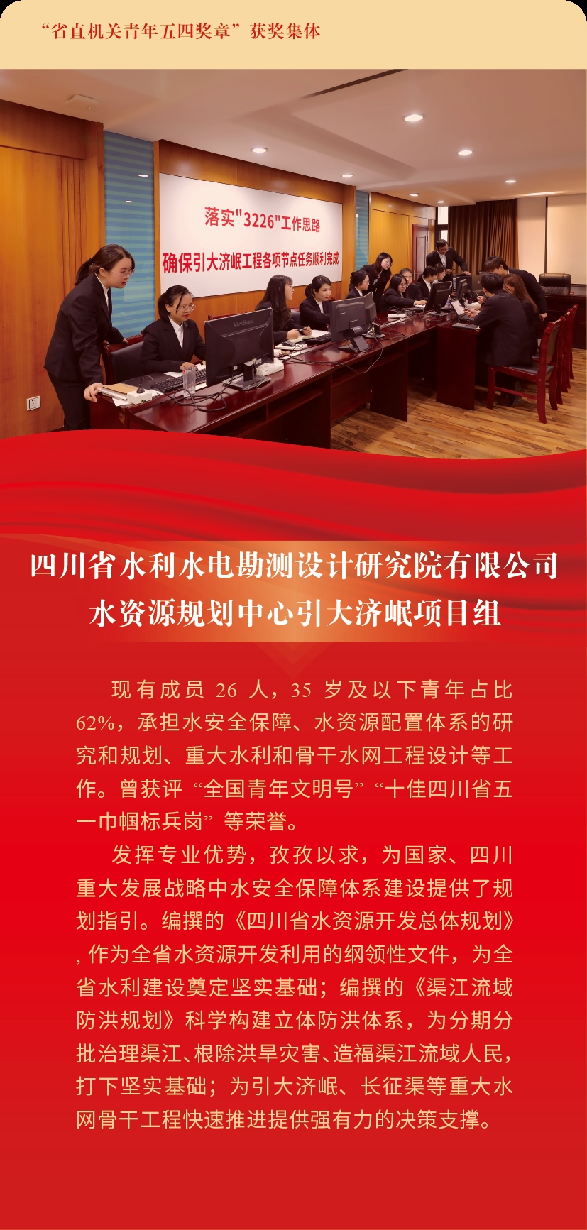 為集中展示新時代四川省直機關(guān)青年的精神品格和價值追求,激勵全省廣大機關(guān)青年學(xué)習(xí)先進、爭當先進,以優(yōu)異青春業(yè)績貫徹落實習(xí)近平總書記來川視察重要指示精神和省第十二次黨代會精神,近日,共青團四川省直機關(guān)工委、四川省直機關(guān)青年聯(lián)合會發(fā)布了關(guān)于授予“四川省直機關(guān)青年五四獎?wù)?rdquo;的通報,授予6名個人“四川省直機關(guān)青年五四獎?wù)?rdquo;稱號,授予10個集體“四川省直機關(guān)青年五四獎?wù)录w”稱號。