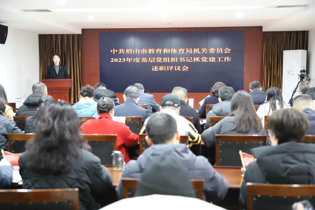 1月16日,眉山市教體局機關黨委召開2023年度基層黨組織書記抓黨建工作述職評議會,會議聽取了11名基層黨組織書記抓黨建工作述職報告,并開展民主評議。