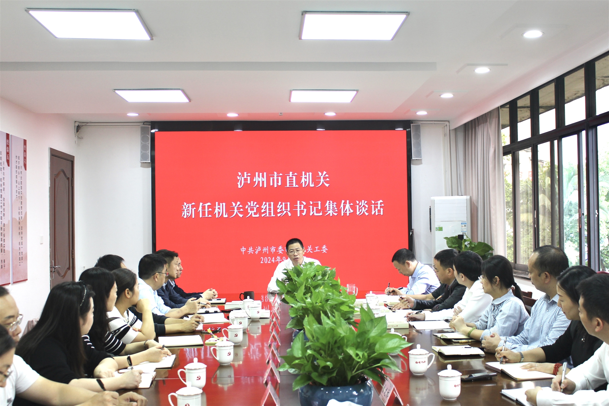 近日,瀘州市委市直機關工委召開近期新任黨組織書記集體談話,市委市直機關工委班子成員、4名新任機關黨委書記、1名基層黨委分管負責同志、8名新任機關黨委專職副書記、1名新任機關黨委副書記參加。