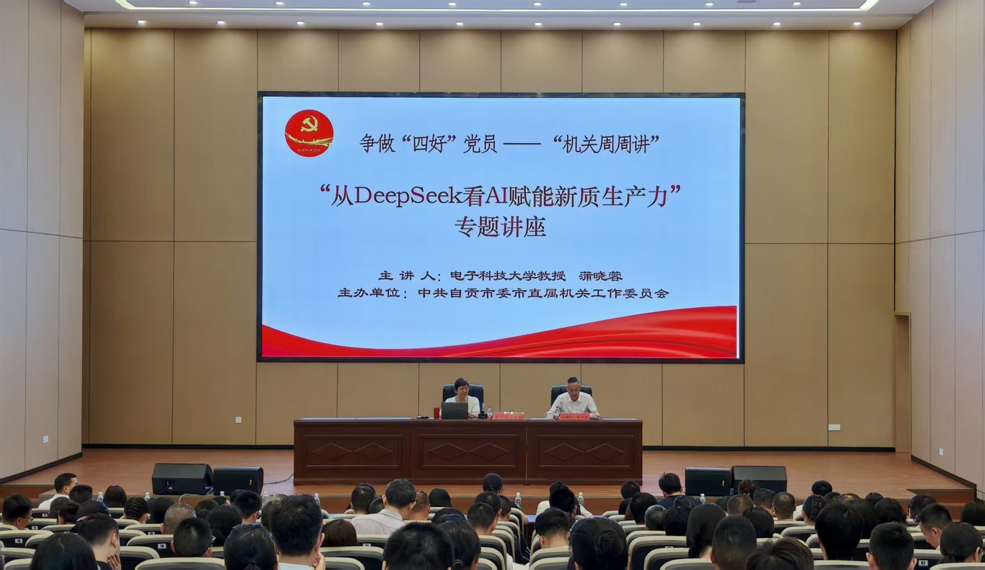 近日,自貢市委市直機關工委主辦的爭做“四好”黨員——“機關周周講”專題講座在自貢市建筑工程技術中心報告廳舉行。活動邀請電子科技大學教授作專題講座,市直機關黨員干部代表、鹽都先鋒青年黨員突擊隊隊員代表共230余名黨員干部參加講座。
