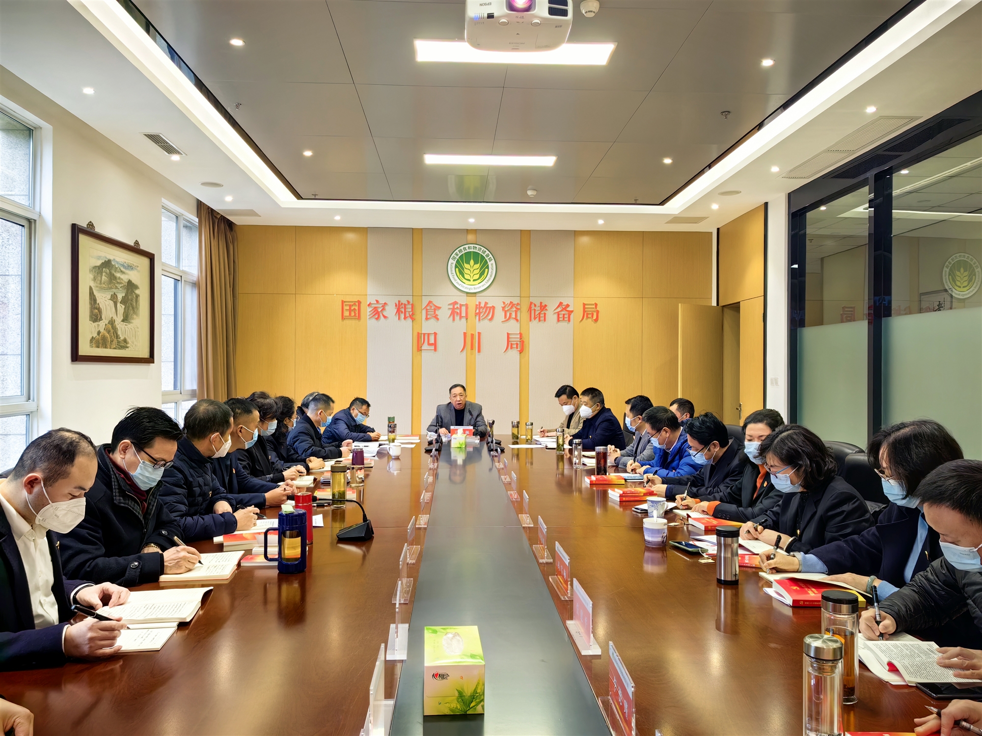 12月7日,國家糧食和物資儲備局四川局分黨組理論學(xué)習(xí)中心組召開學(xué)習(xí)會,深入學(xué)習(xí)黨的二十大精神,圍繞“深化思想認識,凝聚奮進合力,為實現(xiàn)黨的二十大提出的奮斗目標貢獻糧儲力量”開展交流研討。局分黨組書記、局長關(guān)路林主持會議,分黨組成員出席,省直機關(guān)紀檢監(jiān)察工委相關(guān)人員列席會議、局機關(guān)和服務(wù)中心副處級以上黨員干部列席。