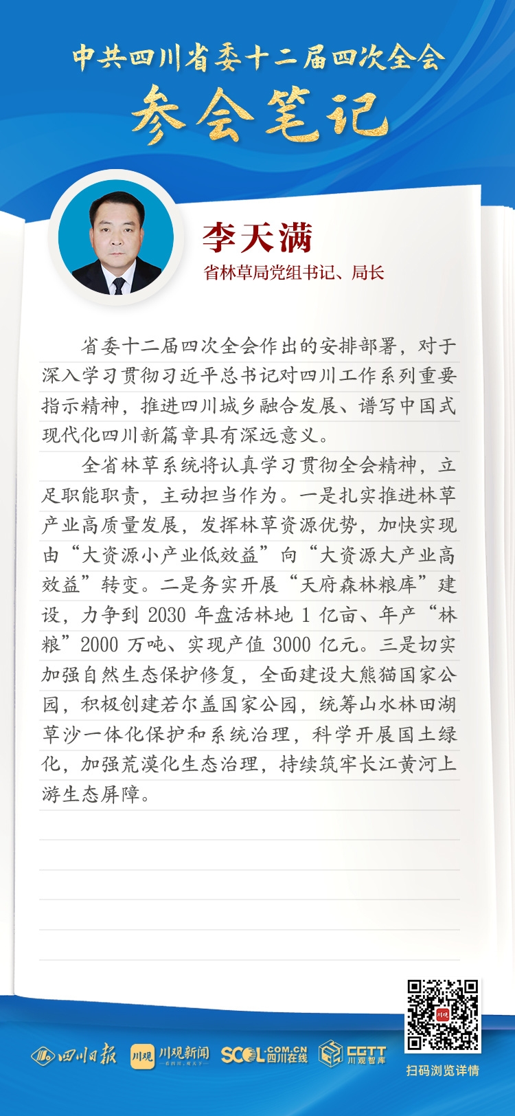 全會參會筆記丨省林草局黨組書記、局長李天滿: