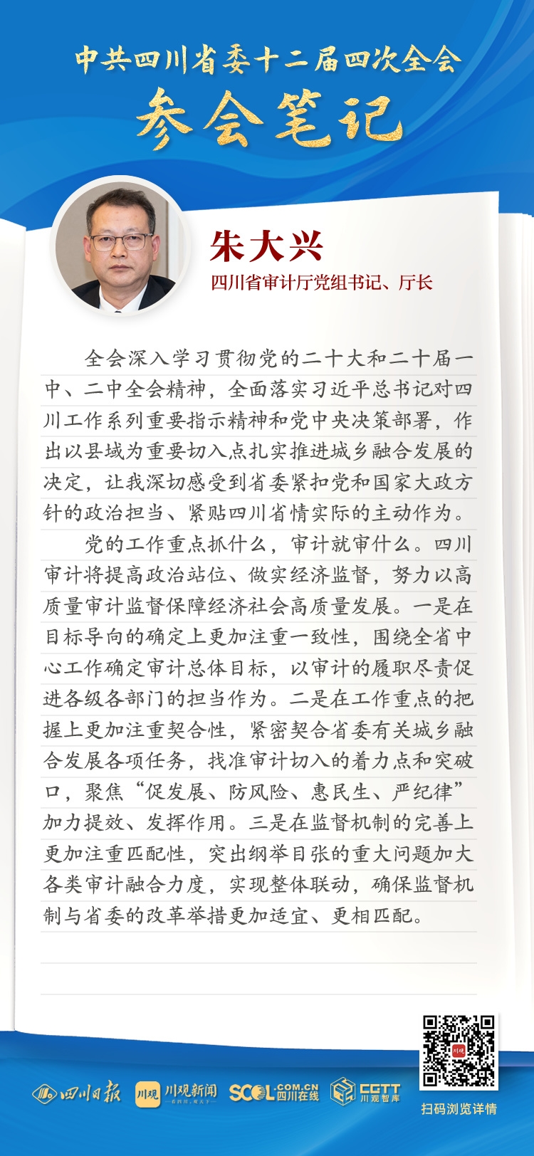 全會參會筆記丨四川省審計廳黨組書記、廳長朱大興:
