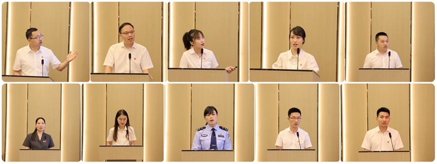 此次分享交流會是全省機關青年黨員干部黨史學習教育的第二場。在認真研讀習近平《論中國共產黨歷史》等4本指定學習用書的基礎上,成都市人民檢察院廖桃、綿陽市市場監管局劉毅、樂山市新聞網李麗秋、南充市委重大辦謝凈洋、宜賓市紀委監委機關明勇、廣安市中級人民法院陳蕓瑩、巴中市團市委馮巧、雅安市公安局陳赟雅、眉山市仁壽縣委組織部張俊、涼山州交通運輸綜合行政執法支隊孔林波緊緊圍繞黨的光輝歷程、偉大貢獻、初心宗旨、重大理論成果、偉大精神、寶貴經驗等方面,結合自身思想和工作實際談認識談收獲,展現了各市州機關青年黨員干部學習黨史的成效和良好的精神風貌。
