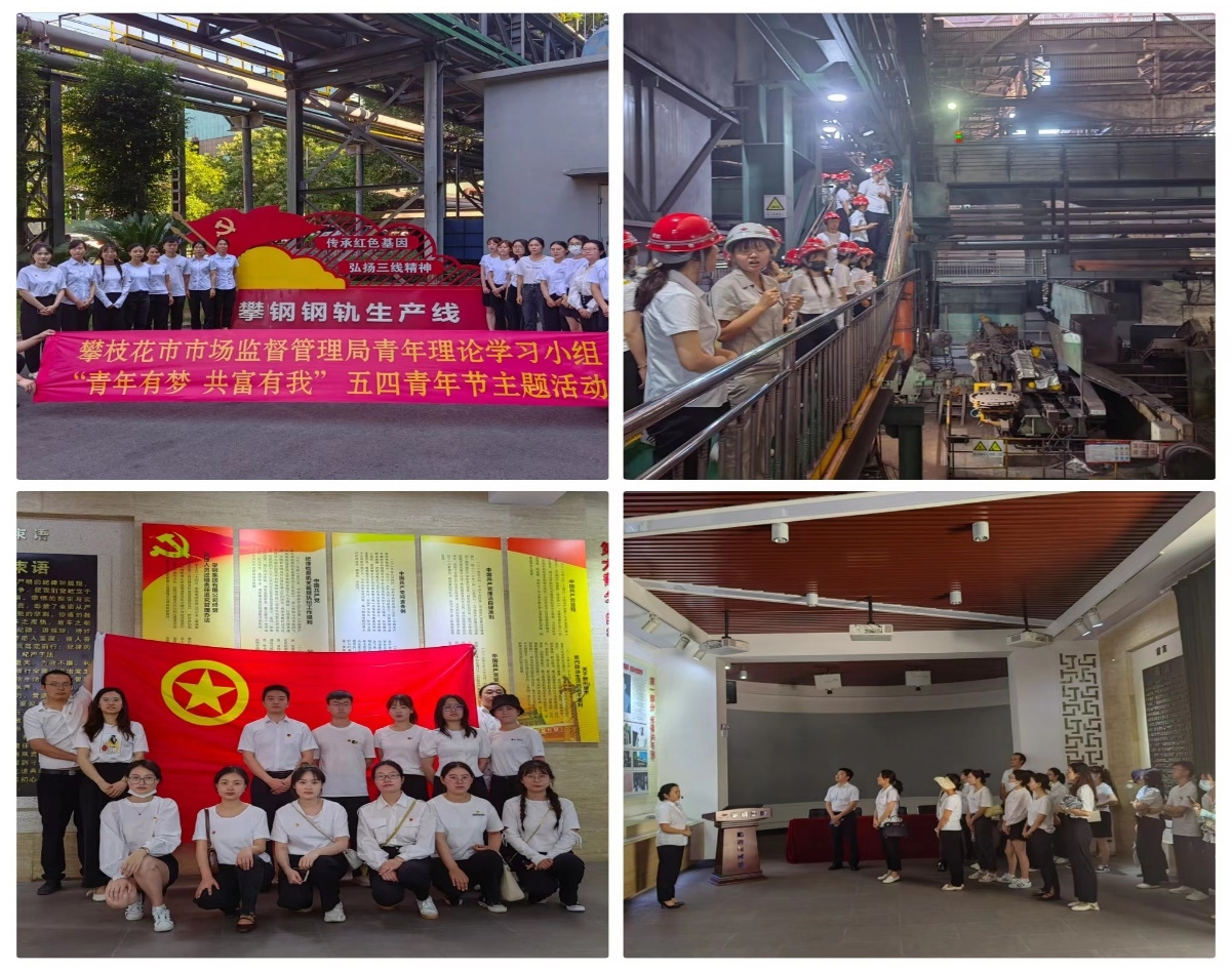 為繼承和發揚五四精神,激勵青年干部積極投身建設共同富裕試驗區,5月6日,攀枝花市市場監督管理局青年理論學習小組到攀鋼集團有限公司開展“青年有夢 共富有我”五四青年節主題活動。