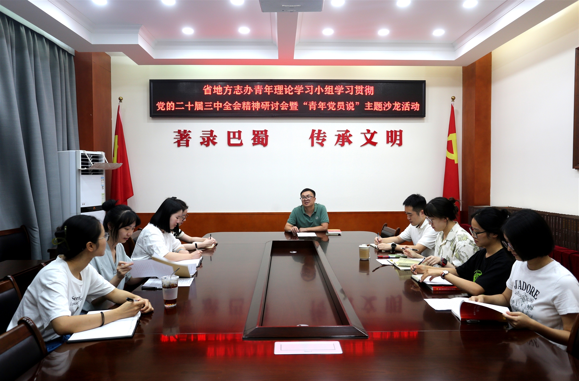 9月12日,省地方志辦舉辦青年理論學(xué)習(xí)小組學(xué)習(xí)貫徹黨的二十屆三中全會精神研討會暨“青年黨員說”主題沙龍活動,推動全辦青年干部深化對進一步全面深化改革、推進中國式現(xiàn)代化的思想認(rèn)識,以青年之力、青春之我在新時代新征程四川現(xiàn)代化建設(shè)中展現(xiàn)作為、彰顯風(fēng)采、貢獻力量。機關(guān)黨委副書記、紀(jì)委書記劉源主持會議并作總結(jié)發(fā)言。