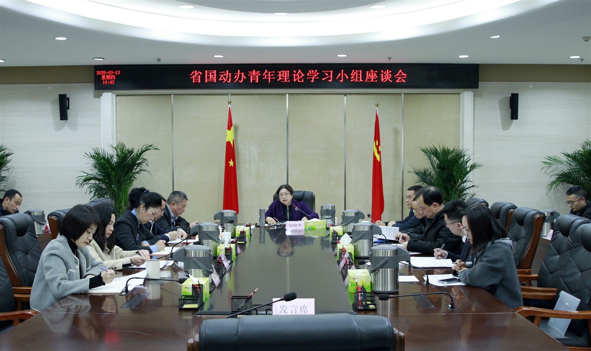 為進一步加強省國動辦青年干部隊伍建設,營造積極向上的學習氛圍,不斷推動青年干部加強理論武裝、提升工作本領,3月13日,省國動辦召開青年理論學習小組座談會,黨組書記、主任屈曉華出席會議并講話,黨組成員、機關黨委書記喻華以及機關黨委委員、直屬單位有關負責同志、青年理論學習小組成員共40余人參加會議。