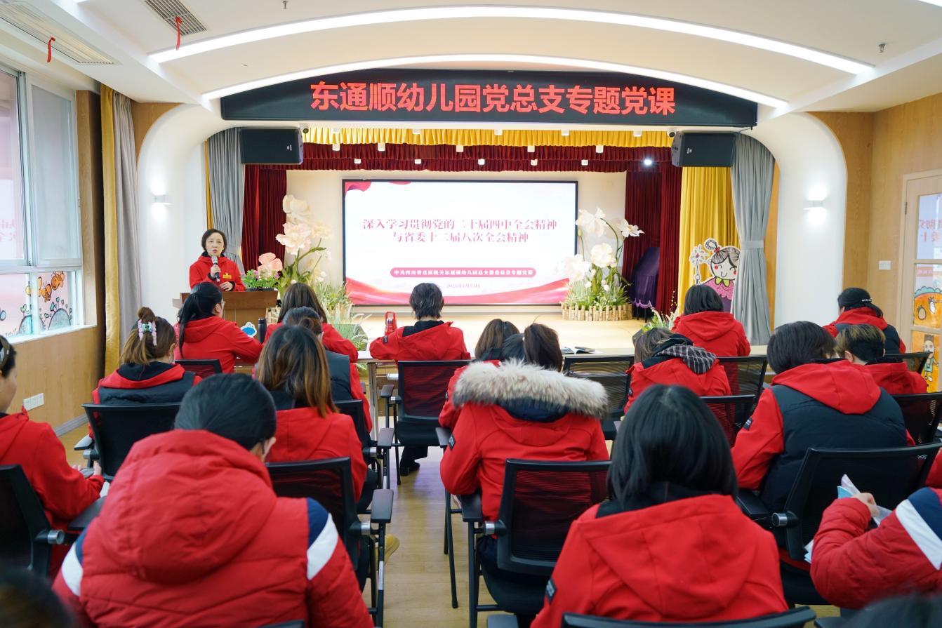 為深入學習貫徹黨的二十屆四中全會及省委十二屆八次全會精神,引導全體黨員干部教職工準確把握“十四五”發展成就與“十五五”戰略使命,切實把思想和行動統一到中央及省委決策部署上來,近日,四川省直屬機關東通順幼兒園組織開展“深學細悟全會精神 凝心聚力實干擔當”系列主題黨日活動。活動通過專題黨課、分組研討、自主研學、成果檢驗等多種形式,推動全會精神學習走深走實、入腦入心,轉化為推動幼兒園高質量發展的具體實踐。