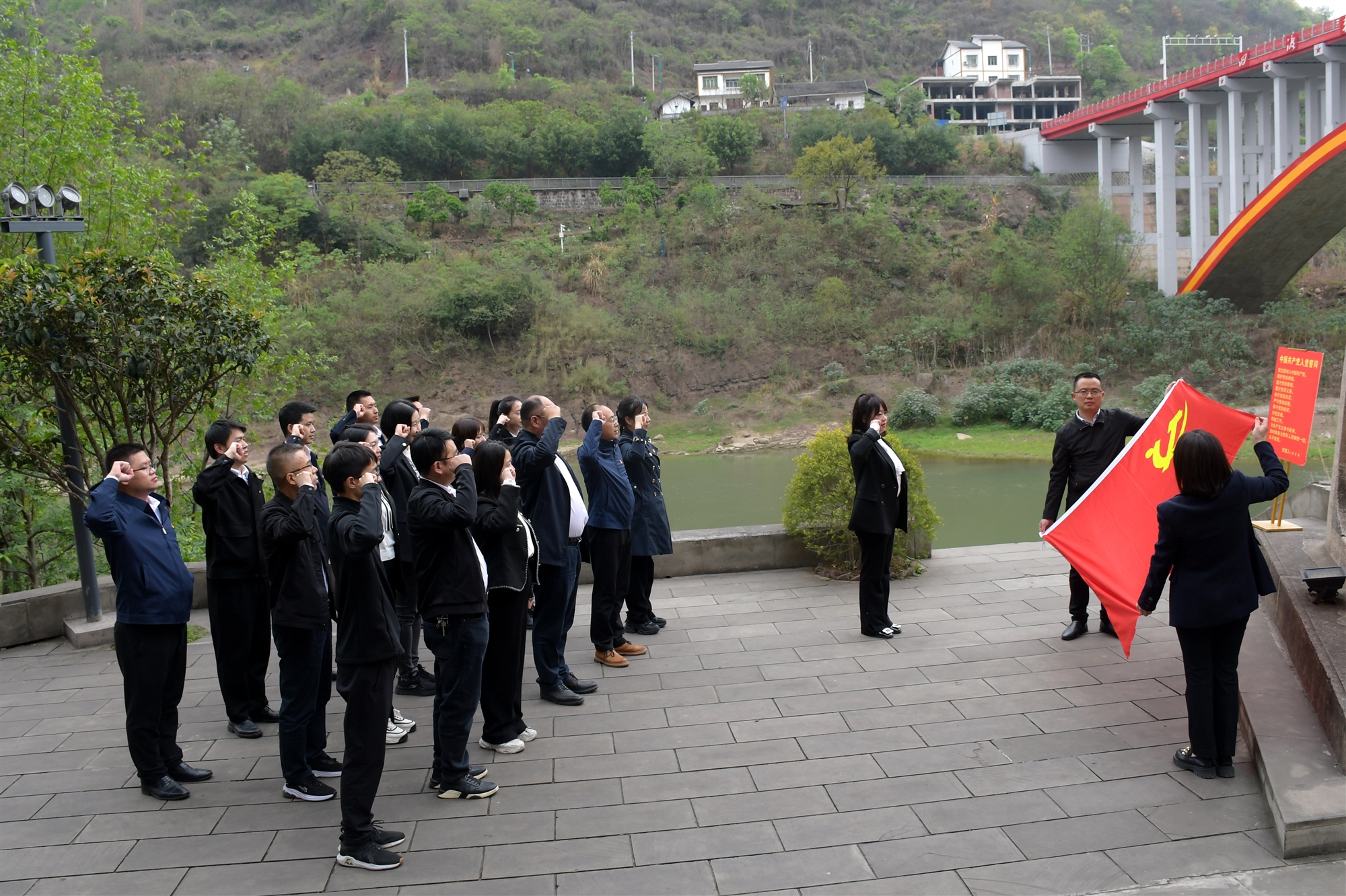 來到紅軍長征四渡赤水陳列館,通過一張張圖片、一件件實物,詳細了解了當年紅軍浴血奮戰的悲壯場面和四渡赤水的光輝壯舉。跟隨著講解員的生動解說,全體黨員沿著太平古鎮順階而下,參觀了紅軍駐地及辦事處舊址等。在赤水河邊的太平渡渡口紀念碑前,大家整齊列隊、肅立默哀,緩步上前向烈士敬獻花籃,莊嚴重溫入黨誓詞,表達了對革命烈士的崇高敬意,進一步筑牢了對黨忠誠的理想信念。